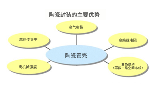 近年來,隨著半導體行業(yè)的空前發(fā)展其芯片封裝技術(shù)也得到了廣泛的應用。因此選用合適的陶瓷管殼封裝尤為重要。集成電路封裝管殼起到了固定密封保護芯片和提高導熱性能等作用,最重要是溝通芯片內(nèi)部和外界電路,將芯片上的接觸點用導線或其他線路封裝在管殼引腳,并建立聯(lián)系。
